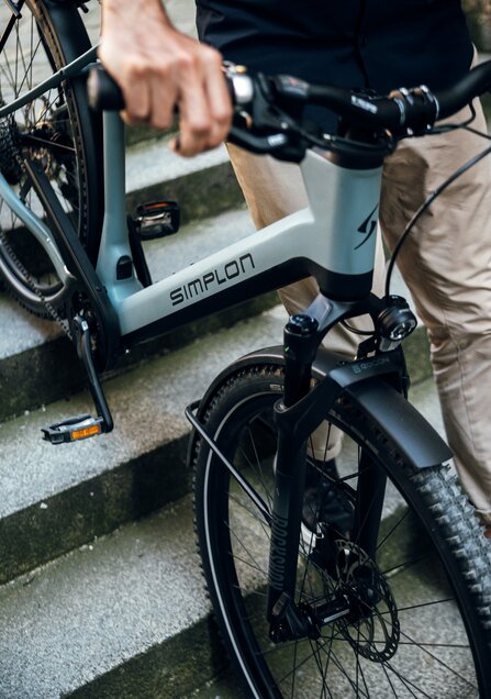 • Motor: Provides pedal assistance. On SIMPLON bikes, it’s positioned near the bottom bracket. This “mid-drive motor” enables a natural riding feel and optimal weight distribution.