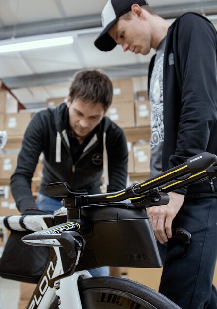 Ich habe mich für das Mr.T2 entschieden, ein Triathlon-Rad, das keine Wünsche offen lässt. Mir war aus aerodynamischen Gründen wichtig, dass es ein integriertes Trinksystem gibt und die Bremsen in der Gabel versteckt sind. Außerdem bietet der Aufbau des Triathlonlenkers zahlreiche Einstellungsmöglichkeiten, sodass ich meine Position im Verlauf der Trainingsmonate noch feintunen kann. Es ist im Vergleich zur Konkurrenz sehr leicht, worauf ich mit meinen 65kg Wert lege.