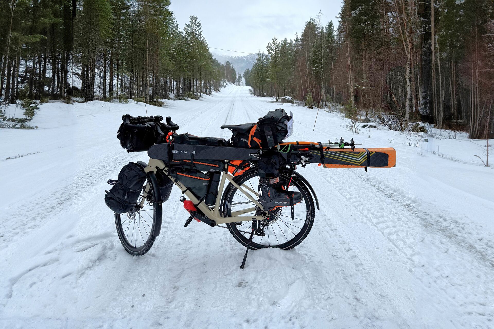 Simple: None of us owns a car, but we were eager to go skiing. Norway’s public transport network doesn’t compare to Switzerland’s, so the bike – or “Velo,” as we say in Switzerland – was the only option. The idea was to take the train north, then explore the country with bike and skis. That’s how our bikeskiing project was born – a mix of bikepacking and ski touring.