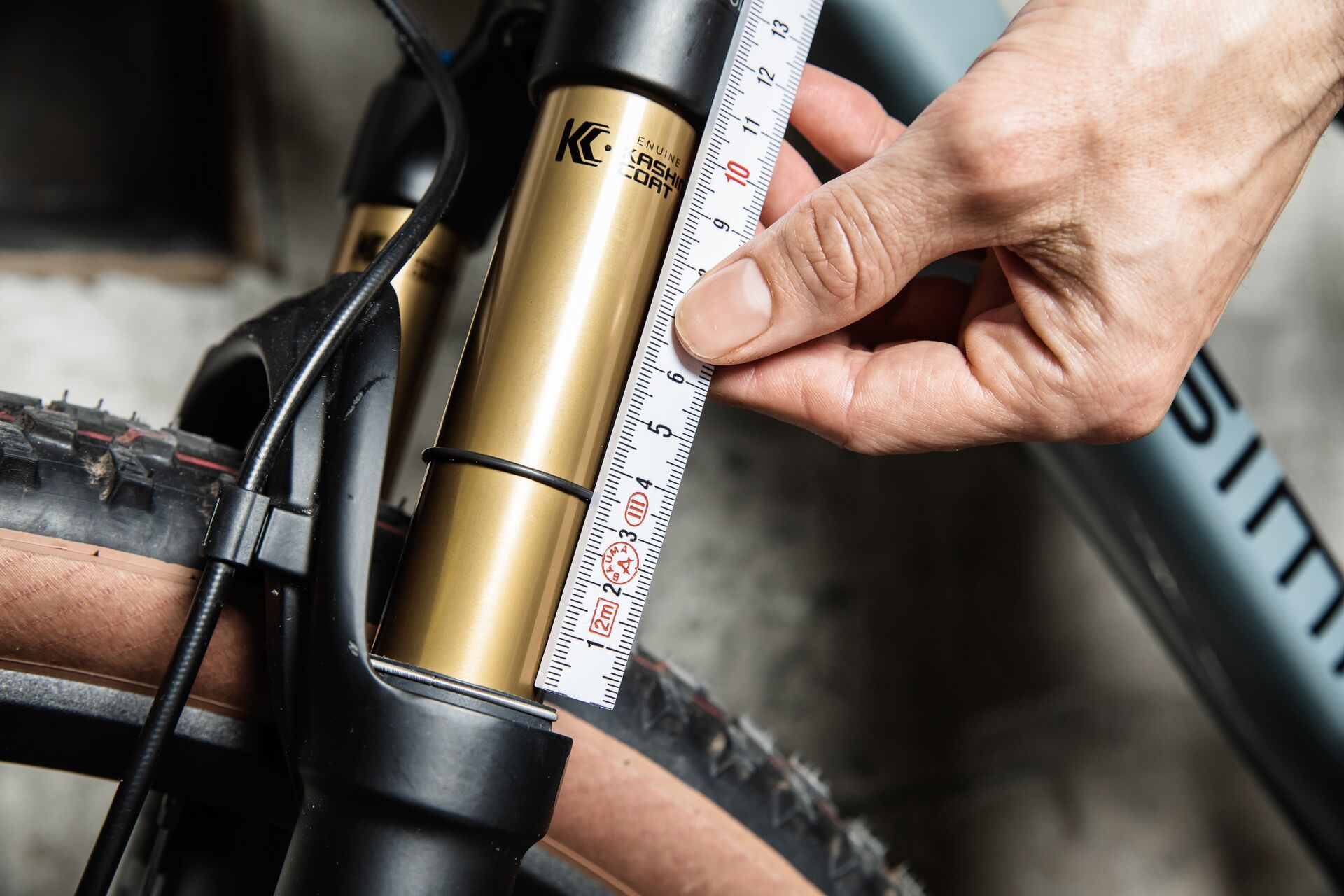 Make sure you get off the bike slowly and carefully, so as not to disturb the O-ring. Once you’re off, you’ll see that the stanchion will have come out of the lower leg again. How far? The O-ring will tell you!