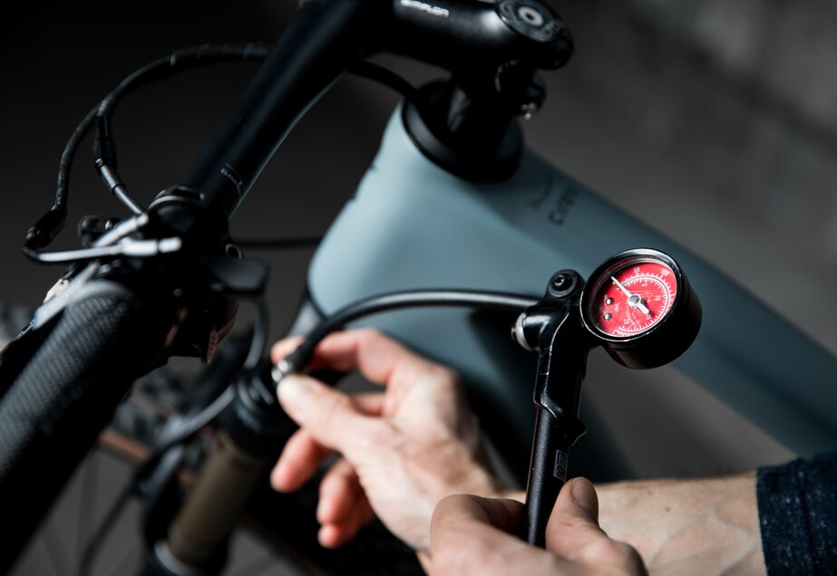 As a rough guideline, you should aim for a sag of about 20 % for the fork and 30 % for the rear shock. If yours is less than that, you can simply let some air out. If it’s more than that, you can add air with a shock pump.